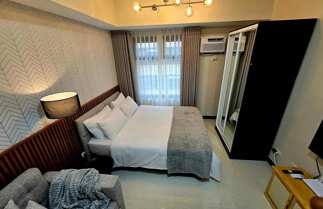 プライベートなプールを提供する寝室1室のマニラ市Aurora Escalades Haven 1アパートメントは、Gateway Galleryから歩いてわずか5分です。 ビジネスでもレジャーでもWi-Fiを利用することができます。